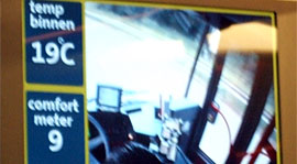 Die letzte Fahrt machen wir mit der 170. Am sehr großen Busbahnhof besteigen wir einen Lions City TÜ von MAN. Ein ähnliches Modell gibt es mit dem Citaro LE. Der Betreiber connexxion hat sogar ein „Comfort Meter“ eingebaut. Während der Fahrt werden Bilder der Überwachungskamera angezeigt, die nächsten Haltenstellen, die Innentemperatur und der Komfort der Fahrt.Eine 1 ist sehr schlecht, ein Wert von 10 sehr gut. Bei jedem Schlagloch rutscht der Wert entsprechend herunter, bei ruhiger Fahrweise steigt er hoch. Eine nette Spielerei, die die 90 Minuten sehr kurzweilig erscheinen lassen. Aber der Sinn erschließt sich nicht wirklich.